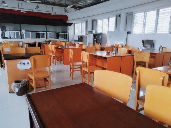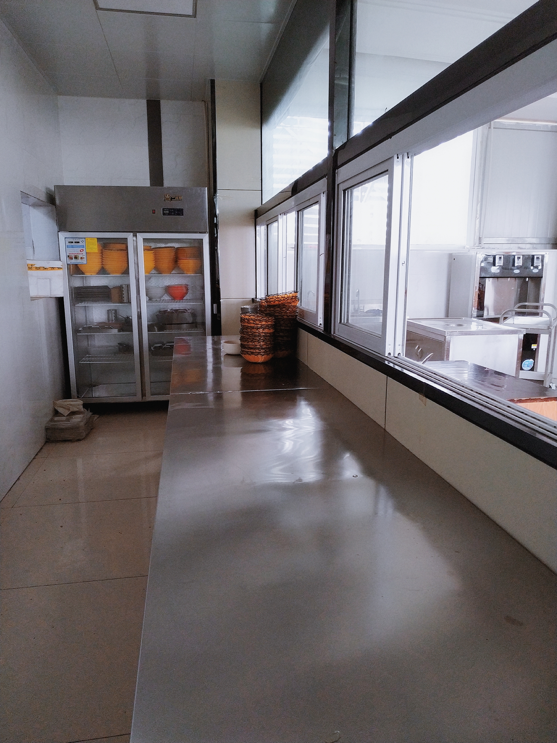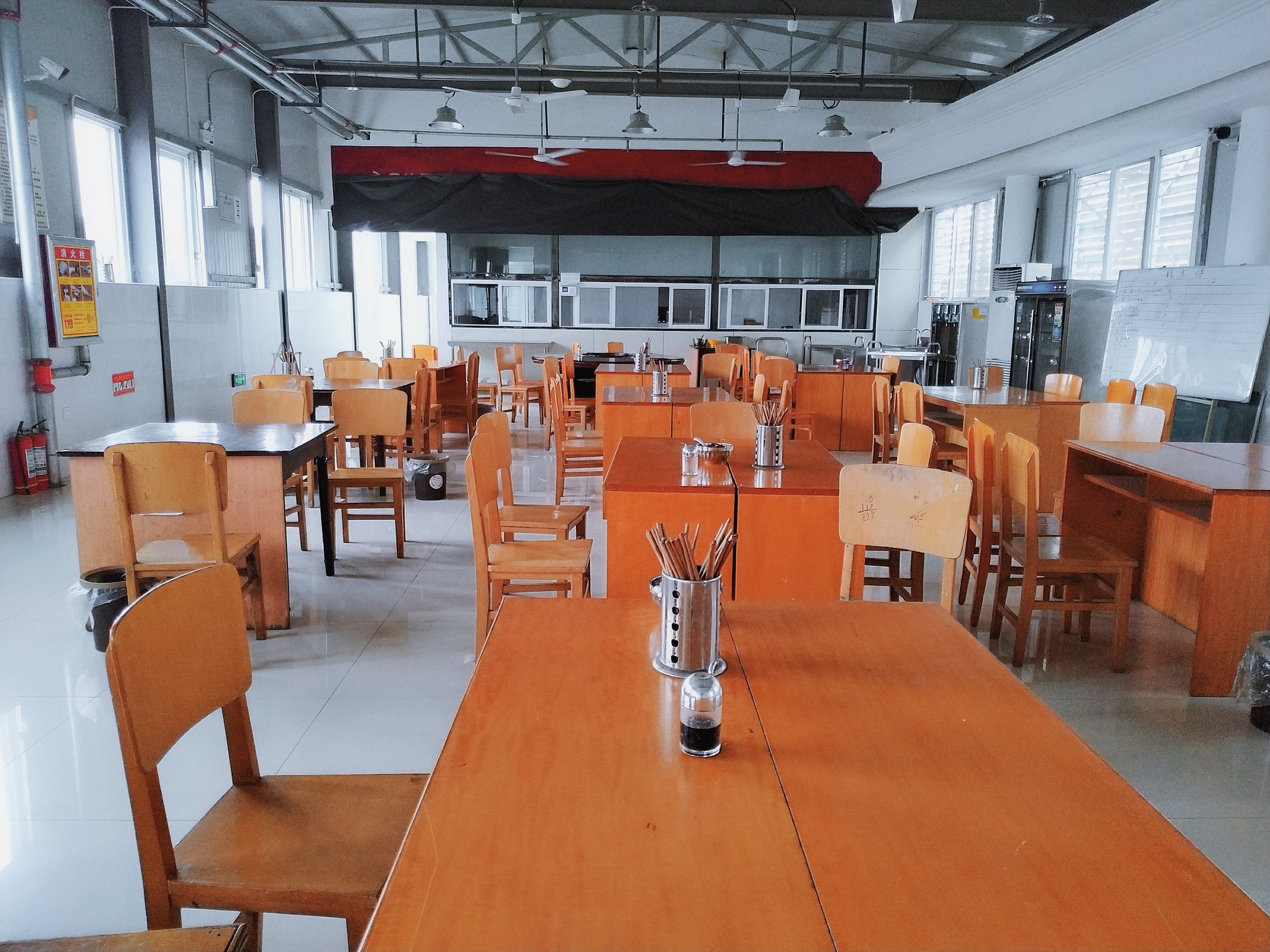 整潔的廚房和先進的設(shè)備,保證了食品衛(wèi)生可口,寬敞明亮的餐廳有空調(diào)、暖氣,為同學(xué)們提供了一個良好的就餐環(huán)境。