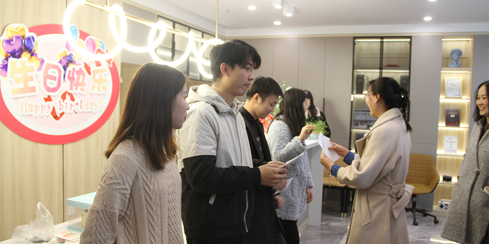 校長(zhǎng)王勤剛老師為他們慶祝,祝福他們事業(yè)順利,生日快樂(lè)!