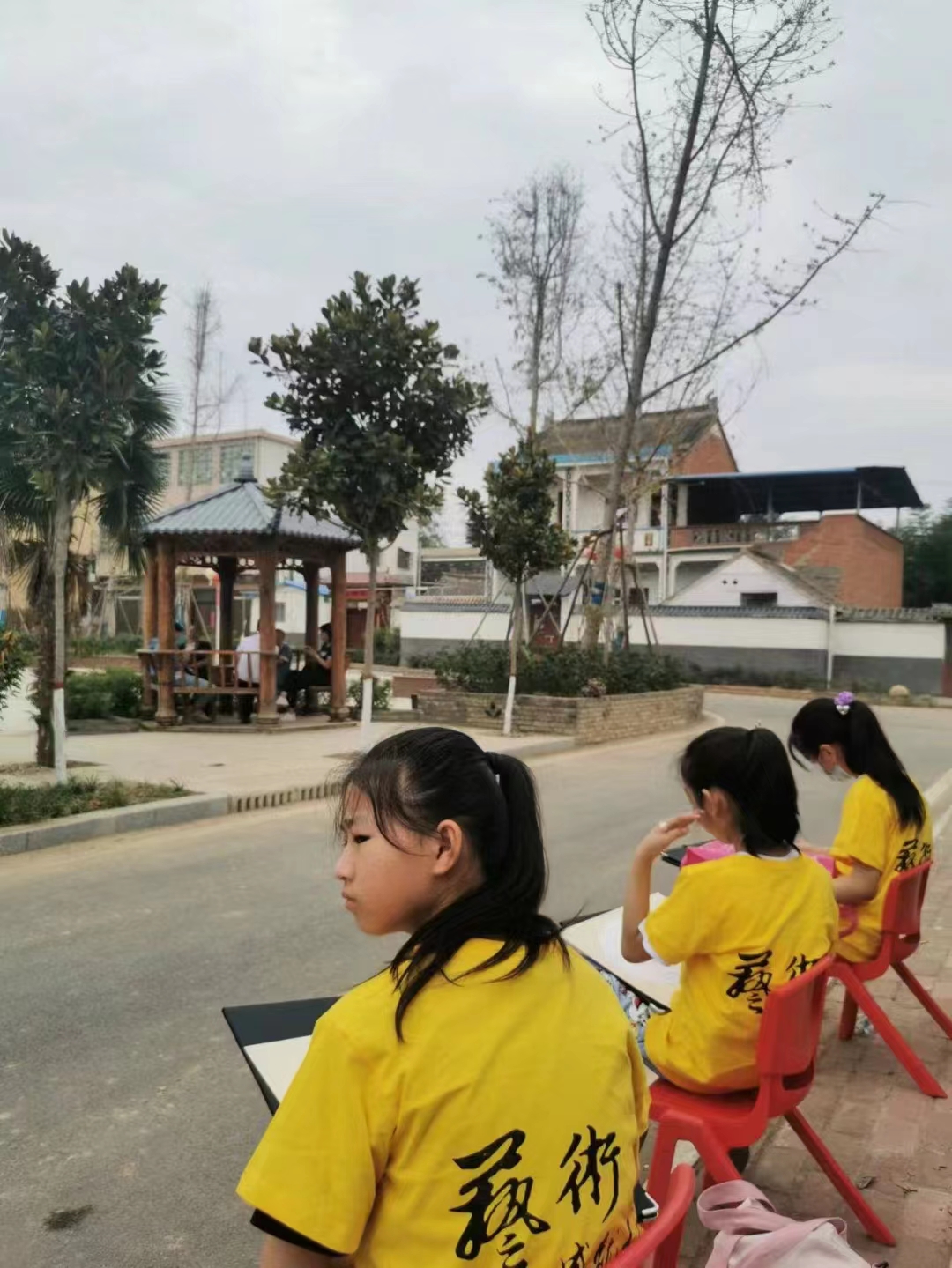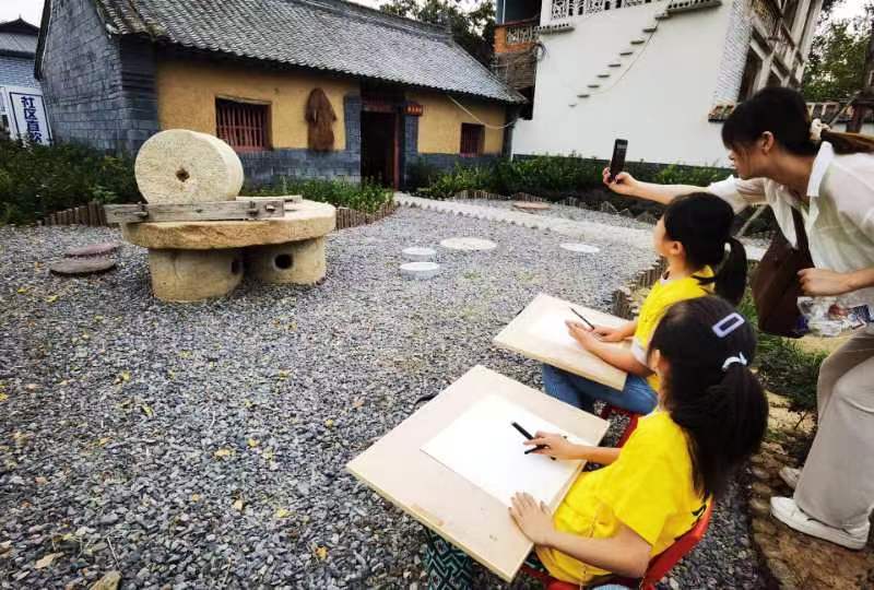 參觀結(jié)束后,孩子們選擇了各自感觸較深的鄉(xiāng)村文化景點,拿起畫夾在老師的指導(dǎo)下同繪我們這不一樣的美麗鄉(xiāng)村。