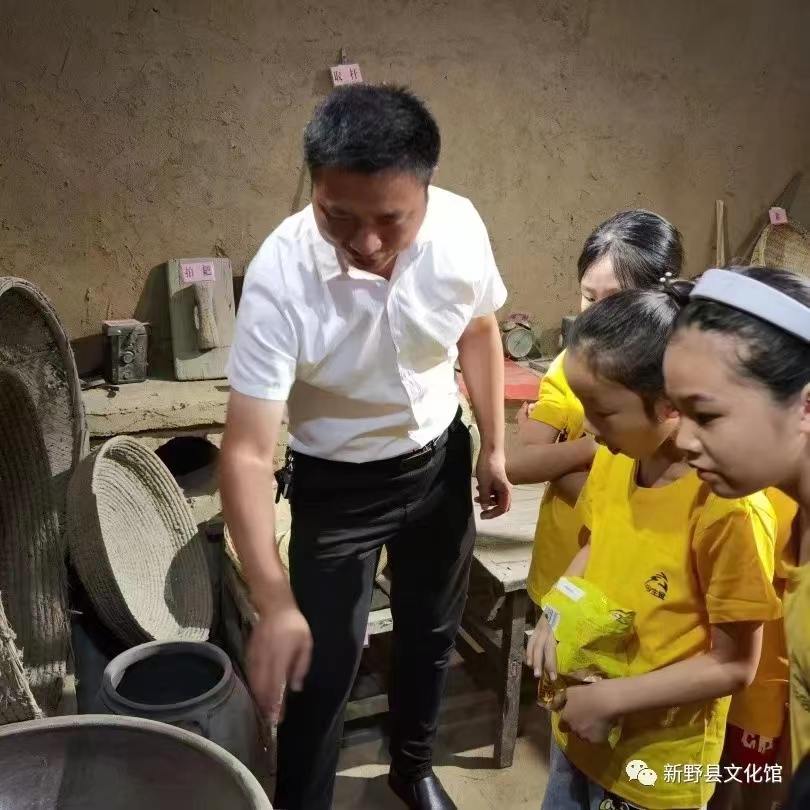 新野縣文廣旅局領(lǐng)導(dǎo)正在帶領(lǐng)小畫家們參觀民俗博物館